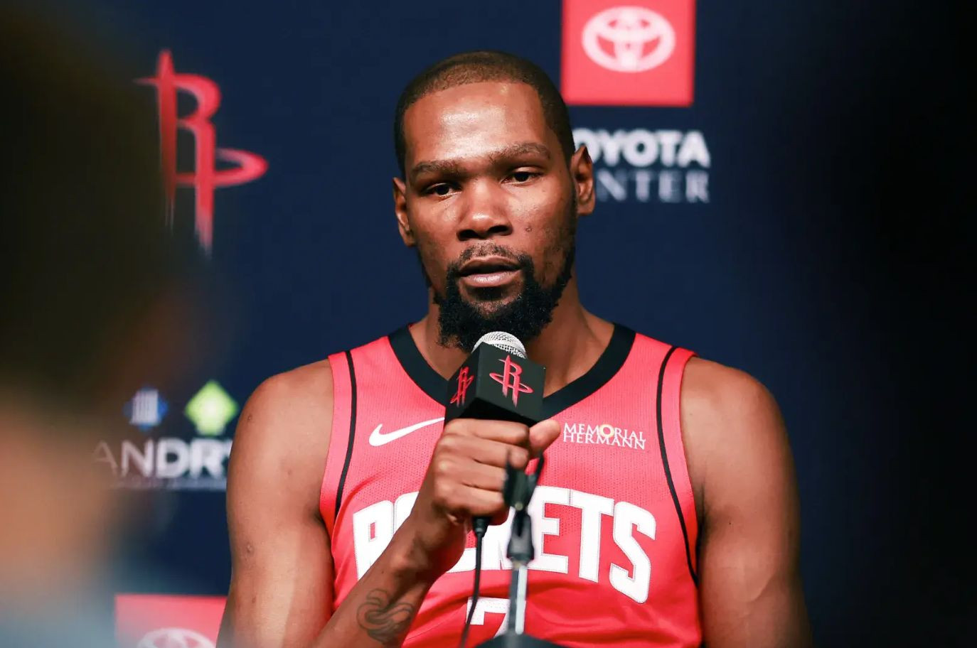 В результате самого масштабного обмена в истории НБА с участием семи команд «Рокетс» подписали контракт с двукратным чемпионом НБА Кевином Дюрантом. Ему 37 лет, но возраст никак не влияет на его фирменную результативность: 26,6 очка в среднем за матч, почти 53% попаданий с игры, 43% — из-за дуги, а процент результативности бросков с дриблинга — лучший в лиге.