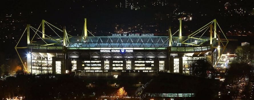 Потрясающий, яркий и самый большой стадион в Германии. Здесь играет домашние матчи команда «Боруссии». Одна из особенностей арены — огромные желтые пилоны вокруг стадиона, почти вертикальные трибуны и настоящая фанатская атмосфера.