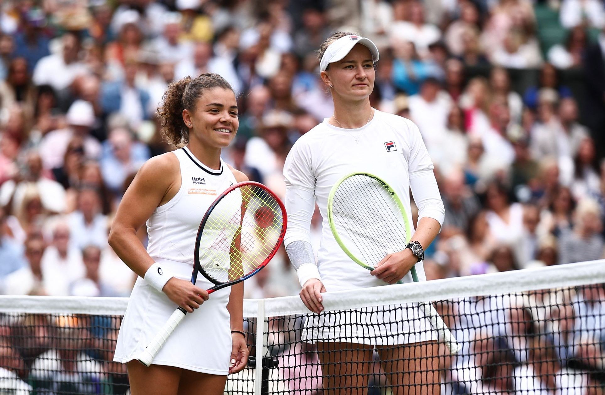 Накануне матча Алькараса и Джоковича на Уимблдоне состоялся финал женского турнира, победу в котором одержала чешская теннисистка Барбора Крейчикова. Для нее этот титул стал вторым на турнирах «Большого шлема», а ее соперница, итальянка Ясмин Паолини, проиграла второй финал мэйджора подряд. Всё решил один-единственный брейк, который Крейчикова сделала после двойной ошибки соперницы на брейк-пойнте.